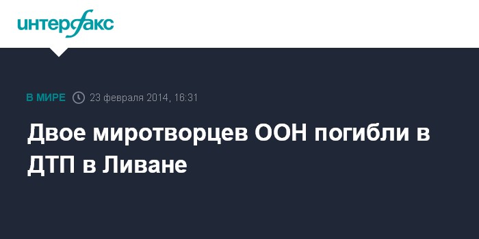 Москва. 23 февраля. INTERFAX.RU - В результате ДТП в Ливане погибли двое военнослужащих миротворческого контингента ООН, сообщает в воскресенье ливанская газета The Daily Star.