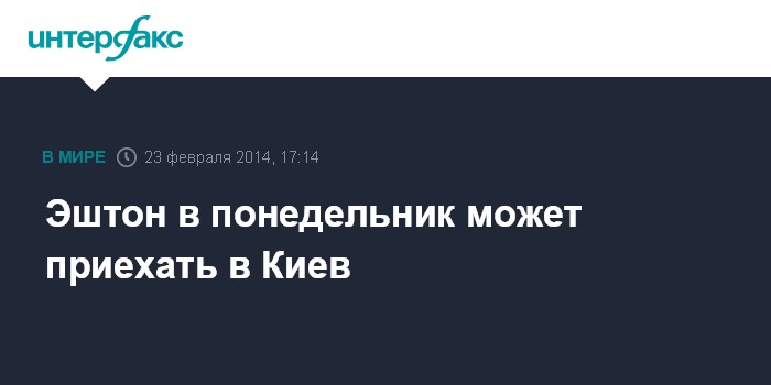 Москва. 23 февраля. INTERFAX.RU - Верховный представитель Евросоюза по вопросам внешней политики и политики безопасности Кэтрин Эштон в понедельник может посетить Киев, сообщили агентству "Интерфакс-Украина" в МИД Украины.