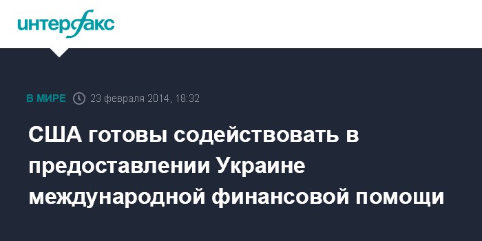 Москва. 23 февраля. INTERFAX.RU - США готовы осуществлять поддержку на пути предоставления Украине международной финансовой помощи, заявил американский посол в Киеве Джеффри Пайетт.