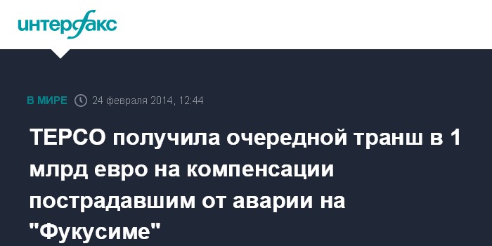 Как сообщалось, в конце января фонд выделял TEPCO 835 млн евро на покрытие убытков. В декабре 2013 года компания получила из фонда около 1 млрд евро, а в сентябре-октябре - порядка 910 млн евро.