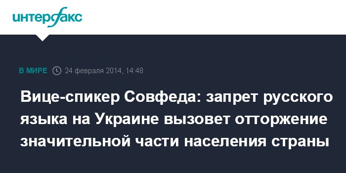Вице-спикер Совфеда: запрет русского языка на Украине вызовет отторжение значительной части населения страны