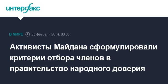 Киев. 25 февраля. ИНТЕРФАКС-УКРАИНА - Членами правительства народного доверия не могут быть участники списка ста богатейших людей Украины и руководители органов исполнительной власти или работники администрации президента, занимавшие эти должности с начала 2010 года, такие критерии отбора сформулировал круг народного доверия.