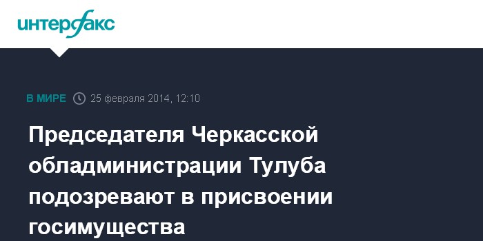 Киев. 25 февраля. INTERFAX.RU - Прокурор Черкасской области сообщил о подозрении председателю Черкасской областной государственной администрации Сергею Тулубу, он оглашен в розыск.