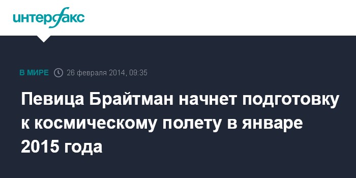 Певица Брайтман начнет подготовку к космическому полету в январе 2015 года