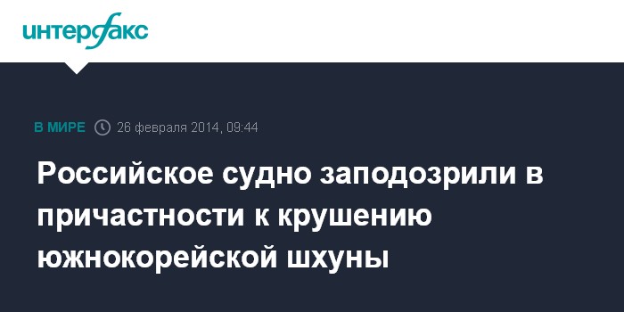 Москва. 26 февраля. INTERFAX.RU - Южнокорейские следователи проверяют российский транспортный рефрижератор (ТР) "Петр Ильичев" на причастность к крушению небольшой шхуны в Японском море.