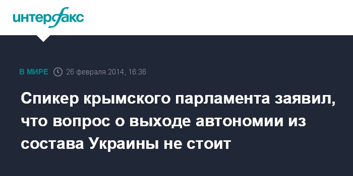 "В крымском парламенте не ставят вопрос о выходе Крыма из состава Украины. Это провокация с целью дискредитировать Верховный Совет автономии, лишить его легитимности. К сожалению, эта провокация организована и поддержана макеевской командой в крымском правительстве, которая ради сохранения власти готова пожертвовать общественно-политической стабильностью на полуострове. Для них это чужая земля!", - заявил спикер крымского парламента.