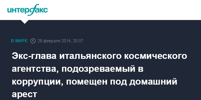 Экс-глава итальянского космического агентства, подозреваемый в коррупции, помещен под домашний арест