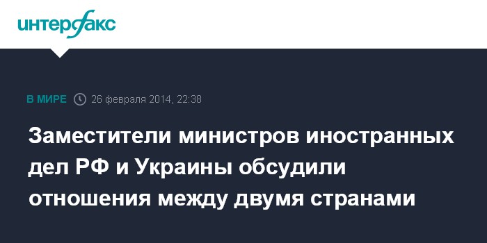 26 февраля 2014 года состоялся телефонный разговор статс-секретаря - заместителя министра иностранных дел Российской Федерации Григория Карасина с первым заместителем министра иностранных дел Украины Русланом Демченко, сообщает МИД России.