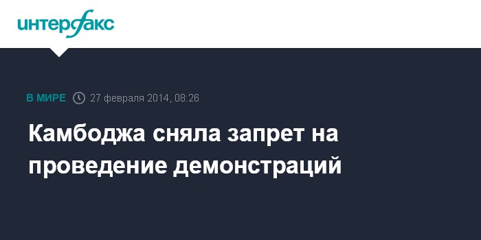 Бангкок. 27 февраля. INTERFAX.RU - Камбоджа отменила запрет на публичные протесты и демонстрации, введенные в прошлом месяце после силового разгона бастующих рабочих, сообщает тайская газета Bangkok Post.