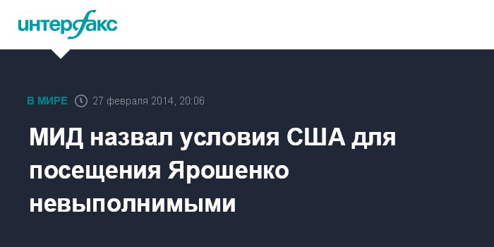 МИД назвал условия США для посещения Ярошенко невыполнимыми