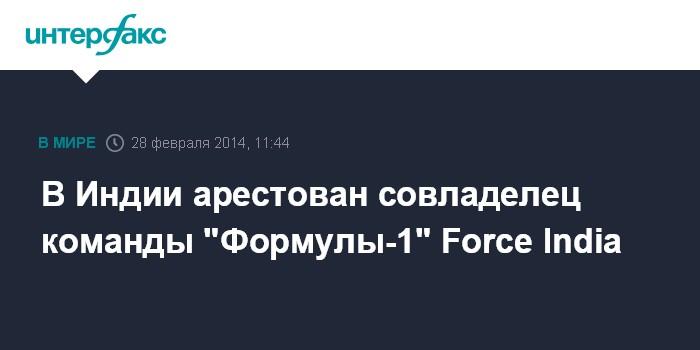В Индии арестован совладелец команды "Формулы-1" Force India