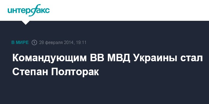 Москва. 28 февраля. INTERFAX.RU - И.о. президента Украины Александр Турчинов назначил Степана Полторака командующим внутренними войсками МВД.