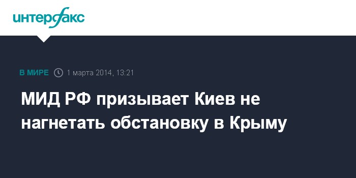 В МИД заявили: "Призываем тех, кто дает подобные приказы из Киева, к сдержанности. Считаем крайне безответственным дальнейшее нагнетание и без того напряженной обстановки в Крыму".