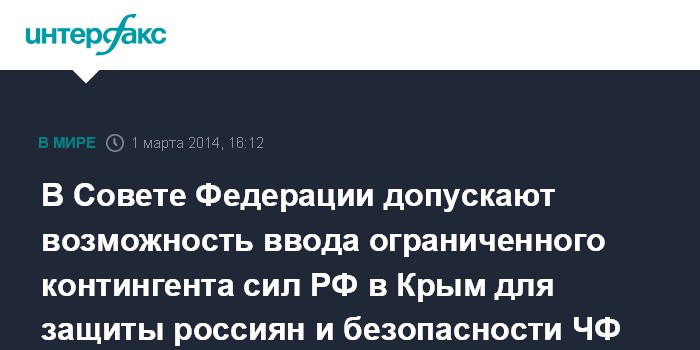 В Совете Федерации допускают возможность ввода ограниченного контингента сил РФ в Крым для защиты россиян и безопасности ЧФ