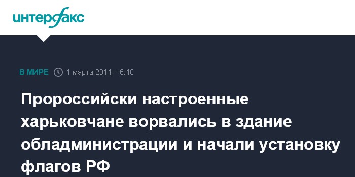 Пророссийски настроенные харьковчане ворвались в здание обладминистрации и начали установку флагов РФ