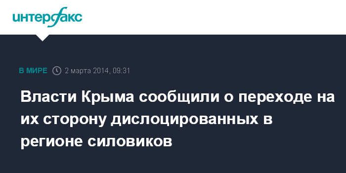 "В настоящий момент подразделения противовоздушной обороны вооруженных сил Украины, расквартированные в АРК, также переходят на сторону крымчан. Отряды крымской самообороны сегодня после обеда заняли республиканскую прокуратуру", - заявил первый вице-премьер крымского правительства.