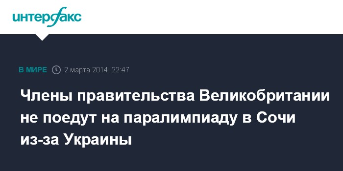 "По причине серьезной ситуации в Украине Вильям Хэйг (министр иностранных дел Великобритании) и я считаем, что будет неправильным для министров Великобритании принять участие в паралимпийских играх в Сочи", - написал Д.Кэмерон на своей странице в Твиттере.