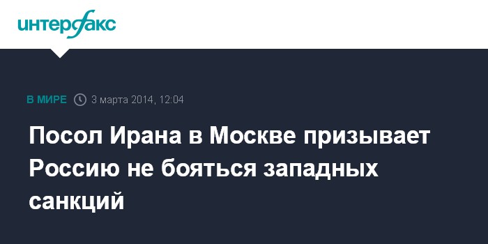 Москва. 3 марта. INTERFAX.RU - Значение санкций Запада в отношении Ирана переоценено, Москва без опасений могла бы более тесно сотрудничать с Тегераном в экономической сфере, заявляет посол республики в РФ Ихди Санаи.