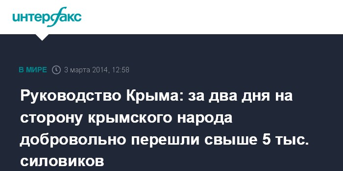 Руководство Крыма: за два дня на сторону крымского народа добровольно перешли свыше 5 тыс. силовиков