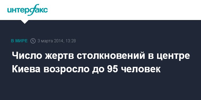 Москва. 3 марта. INTERFAX.RU - По состоянию на 6 утра понедельника, 3 марта, с 30 ноября 2013 года погибло и умерло в Украине 95 человек, сообщают медики.