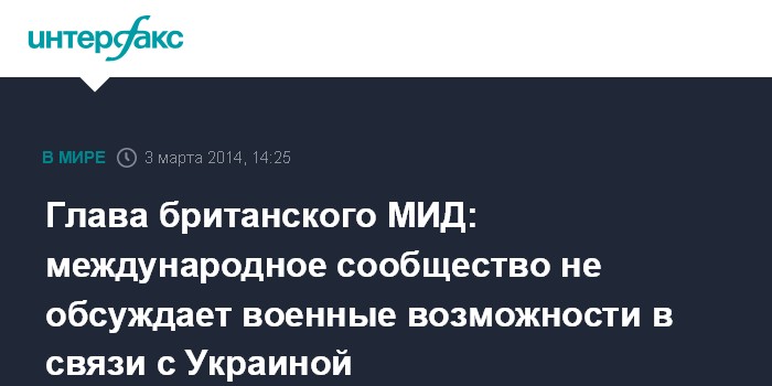 Киев. 3 марта. INTERFAX.RU - Международное сообщество надеется разрешить ситуацию в Крыму и повлиять на Россию дипломатическими и экономическими мерами, заявил министр иностранных дел Великобритании Уильям Хейг.