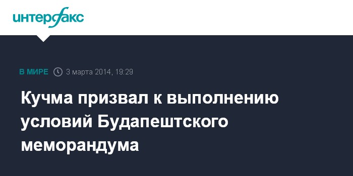 Москва. 3 марта. INTERFAX.RU - Экс-президент Украины Леонид Кучма выразил надежду, что США, Великобритания, Россия, Франция и КНР выполнят взятые на себя обязательства в рамках "Будапештского меморандума" о гарантировании территориальной целостности Украины.