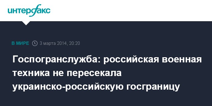Харьков. 3 марта. INTERFAX.RU - Российская военная техника не пересекала украинско-российскую государственную границу, сообщил помощник начальника Восточного регионального управления Госпогранслужбы Мирон Сыдор.
