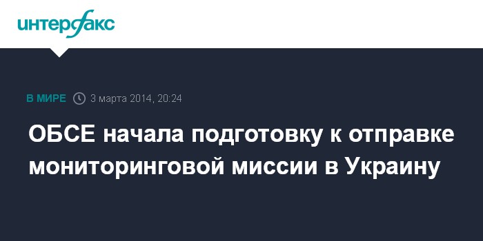 Киев. 3 марта. INTERFAX.RU - Организация по безопасности и сотрудничеству в Европе (ОБСЕ) на внеочередном заседании Постоянного Совета в понедельник широко поддержала предложение о создании и направлении в Украину специальной мониторинговой миссии.