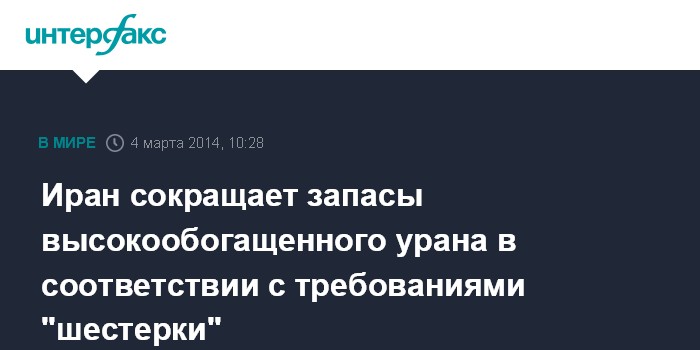Согласно требованиям промежуточного соглашения Тегерана и шестерки международных посредников (пять постоянных членов СБ ООН и Германия), исламская республика должна превратить половину запасов обогащенного до 20% урана в ядерное топливо с более низким уровнем обогащенности.