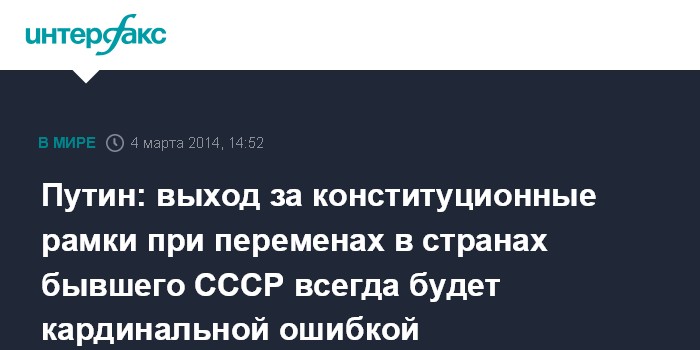 Путин: выход за конституционные рамки при переменах в странах бывшего СССР всегда будет кардинальной ошибкой