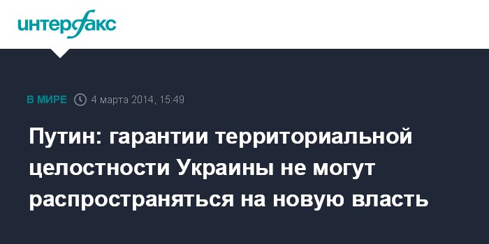 Путин: гарантии территориальной целостности Украины не могут распространяться на новую власть