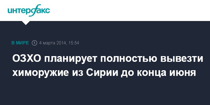Брюссель. 4 марта. INTERFAX.RU - Сирийский правящий режим принял план, предусматривающий вывоз химического оружия из страны в течение 60 дней, заявила спецкоординатор совместной миссии Организации по запрещению химического оружия (ОЗХО) и ООН Сигрид Кааг в интервью агентству AP.