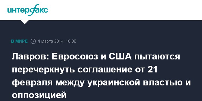 Лавров: Евросоюз и США пытаются перечеркнуть соглашение от 21 февраля между украинской властью и оппозицией