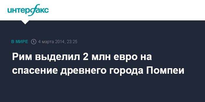 Рим выделил 2 млн евро на спасение древнего города Помпеи