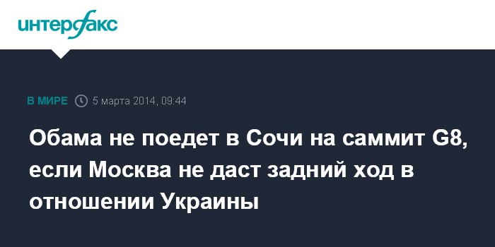 Обама не поедет в Сочи на саммит G8, если Москва не даст задний ход в отношении Украины