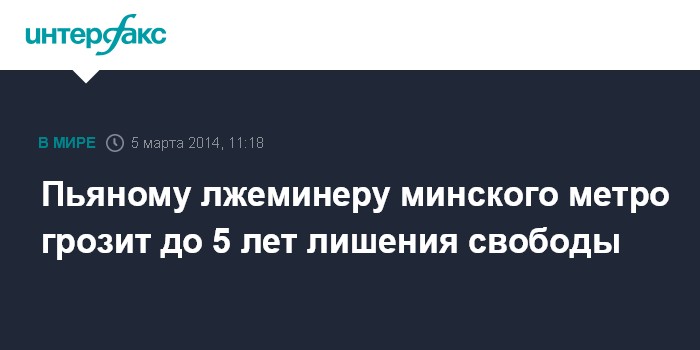 Там отметили, что для проверки данной информации доступ на станцию метро "Купаловская" был ограничен. "Опасных предметов обнаружено не было. Сообщение оказалось ложным, в отношении лжеминера возбуждено уголовное дело по части 1 статье 340 Уголовного кодекса Беларуссии (заведомо ложное сообщение об опасности. - ИФ)", - продолжили там, уточнив, что по данной статье предусмотрено наказание в виде лишения свободы сроком до пяти лет.