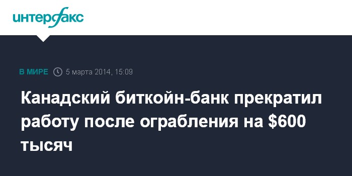 Канадский биткойн-банк прекратил работу после ограбления на $600 тысяч