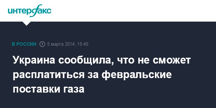 Украина сообщила, что не сможет расплатиться за февральские поставки газа