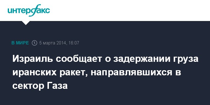 Москва. 5 марта. INTERFAX.RU - Военные армии обороны Израиля в ходе морского рейда перехватили судно с грузом высокотехнологичных ракет из Ирана, передает в среду AP.