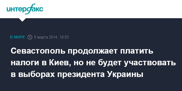 Севастополь продолжает платить налоги в Киев, но не будет участвовать в выборах президента Украины