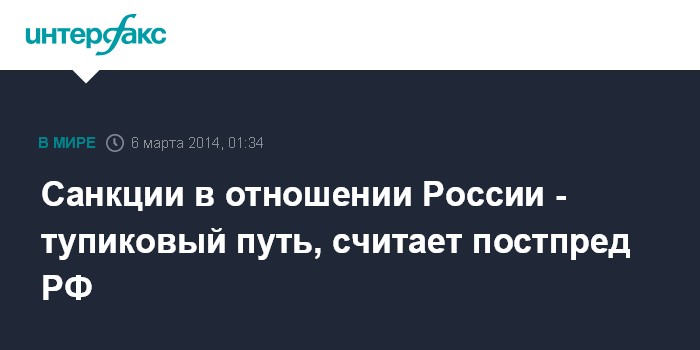 Санкции в отношении России - тупиковый путь, считает постпред РФ