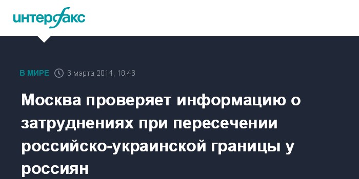 Москва. 6 марта. INTERFAX.RU - Москва проверяет информацию о затруднениях при пересечении российско-украинской границы, возникающих у граждан России.