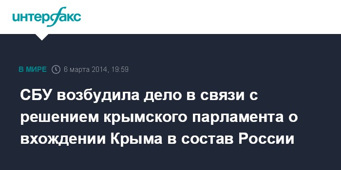 СБУ возбудила дело в связи с решением крымского парламента о вхождении Крыма в состав России