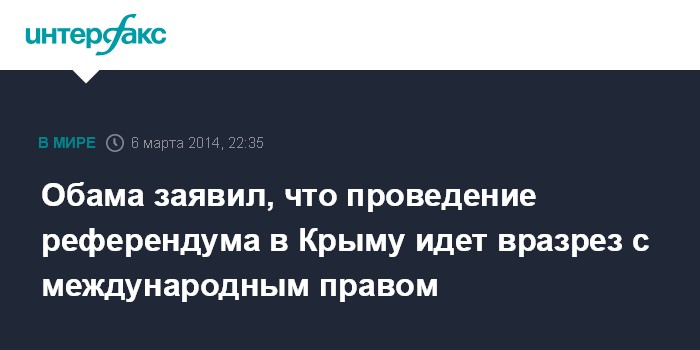 "Предложенный референдум о будущем Крыма станет нарушением конституции Украины и международного законодательства", - сказал американский президент во время выступления в Белом доме.