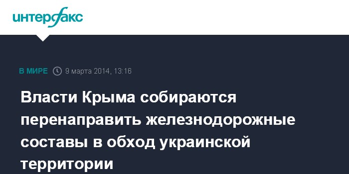 Москва. 9 марта. INTERFAX.RU - Железнодорожное сообщение между Россией и Крымом может быть организовано через Краснодарский край, в обход Украины, заявил "Интерфаксу" вице-премьер автономной республики Крым Рустам Темиргалиев. "Мы рассчитываем на перезагрузку железнодорожных потоков через паром на Кубань. Мы ожидаем, что будет быстрыми темпами строиться мост Крым-Кубань (через Керченский пролив - ИФ), для того, чтобы наши крымчане не почувствовали дискомфорта при поездках из Крыма в Россию", - сказал он.