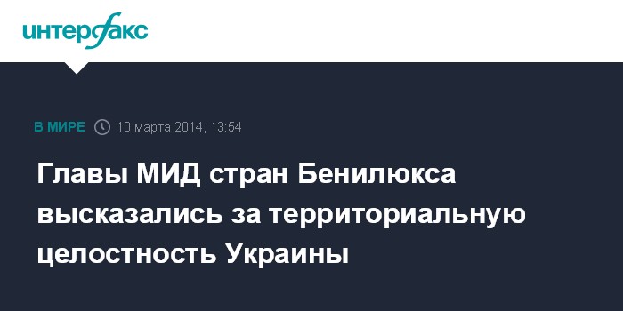 Москва. 10 марта. INTERFAX.RU - Страны Бенилюкса (Бельгия, Нидерланды, Люксембург) заявили о поддержке территориальной целостности Украины.