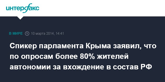 Спикер парламента Крыма заявил, что по опросам более 80% жителей автономии за вхождение в состав РФ