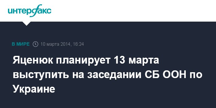 Москва. 10 марта. INTERFAX.RU - Премьер-министр Украины Арсений Яценюк намерен принять участие в заседании Совета Безопасности ООН 13 марта. "В четверг я буду выступать на заседании СБ ООН, на котором будут рассматривать ситуацию на Украине", - сказал А.Яценюк на пресс-конференции в понедельник в Киеве.