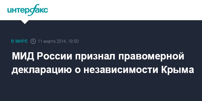 МИД России признал правомерной декларацию о независимости Крыма