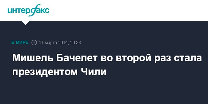 Мадрид. 11 марта. INTERFAX.RU - Мишель Бачелет - бывший кандидат на пост президента Чили от левой коалиции "Новое большинство" - приняла во вторник президентскую присягу на церемонии вступления в должность, сообщает агентство AP.